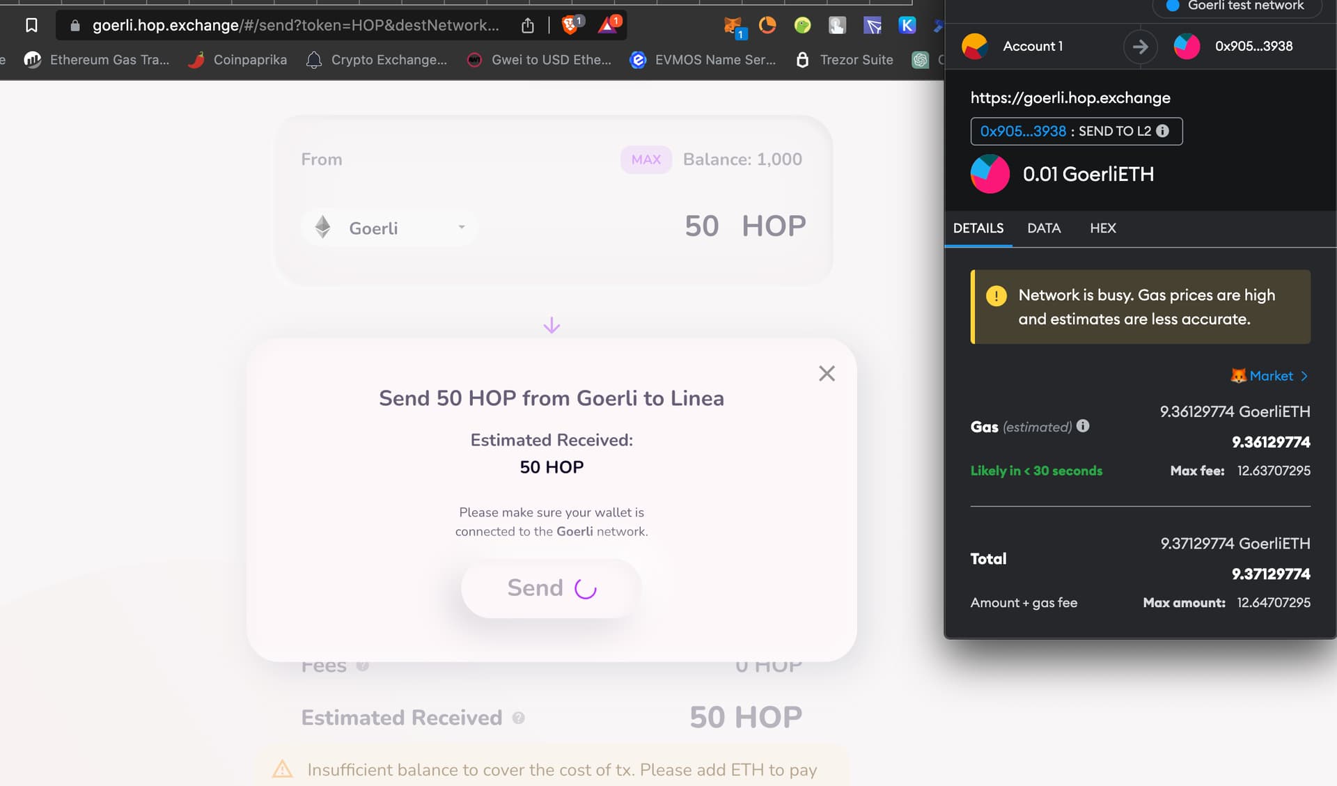I spent days hunting for GETH faucets and trying to accomplish the HOP bridge challenges and - nothing as it is asking me for 9 RTH fee just for 1 bridging transaction